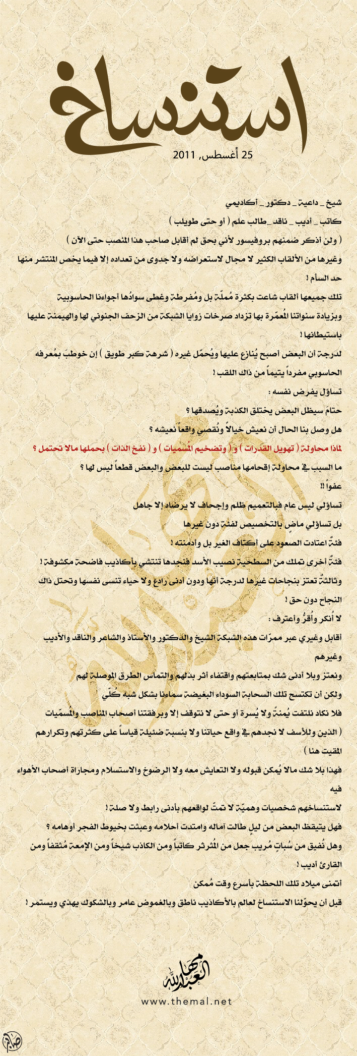 وإن تأخر توقيعي فالعذر (العاقل من اتعظ بغيره)